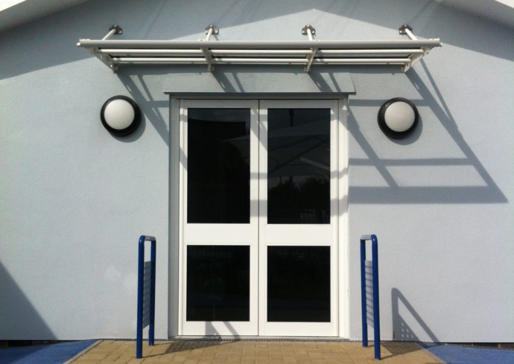 MT Build, a Building Contractors in Chelmsford were in need of a shelter solution for their site at Britannia Village Primary School in East London. As we was already working on a project with them at Wykeham Primary School, also in East London, they asked us if we had a solution. They required a canopy that would provide weather protection at the entrance of the newly built extension.