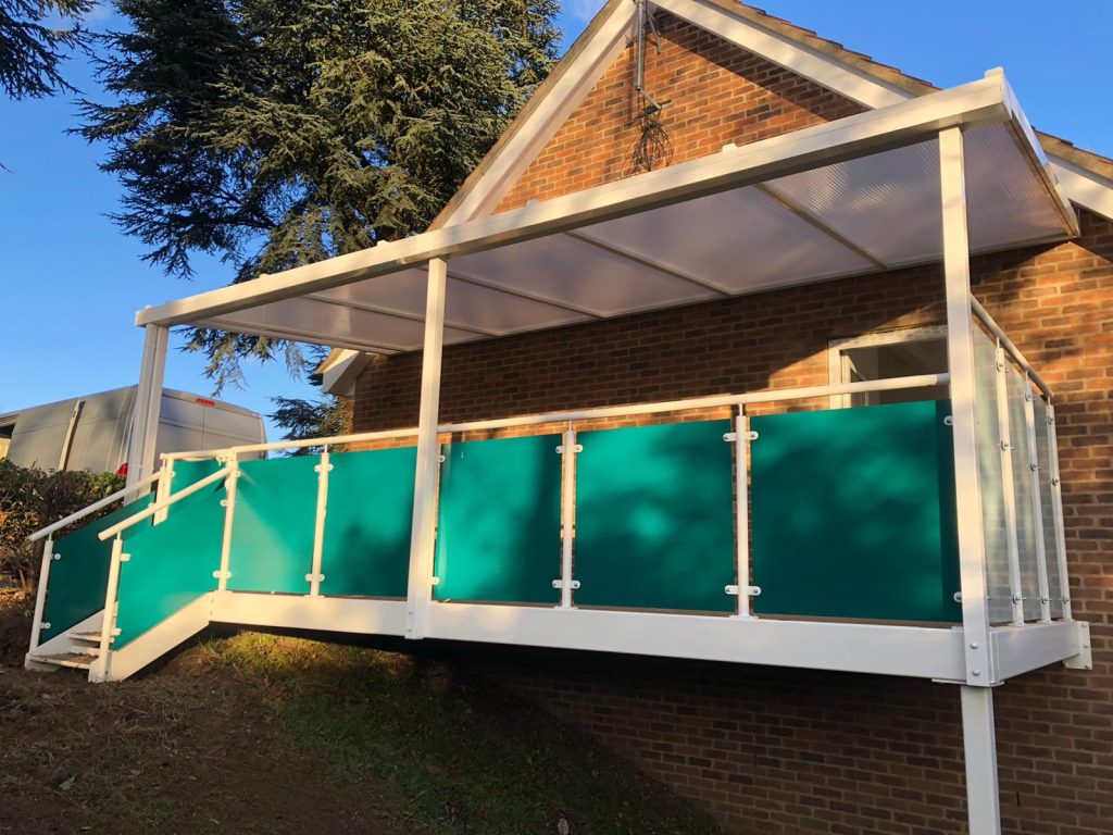 We installed 3 no Coniston Wall Mounted Canopies meeting their requirements. The Coniston creates shelter from rain and snow and shade from the sun with high UV protection allowing the outdoor covered areas to be used all year round.