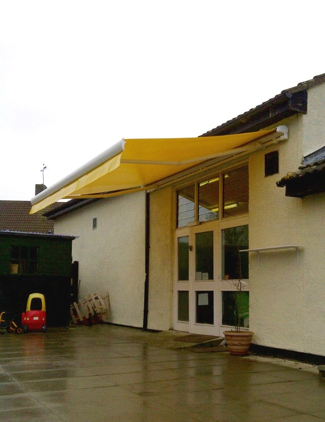 Busy Bees Childcare Centre were looking to create a shaded area in their playground for their pupils. We installed a yellow 4.6m x 2.6m Commercial awning that they can easily open and close when not in use meaning the structure doesn’t take up any room when it is not in use.