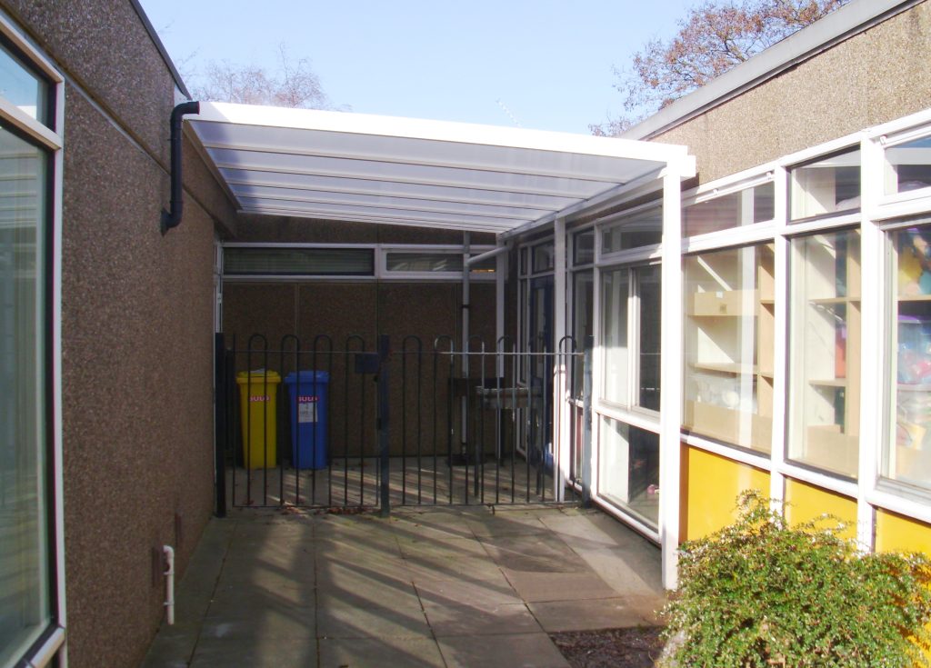 In February 2014, we installed a 7.97m x 5.23m and a 6m x 3m Coniston Wall Mounted Canopies. This created two separate sheltered outdoor play areas, allowing the pupils to play outside in all different weather conditions.