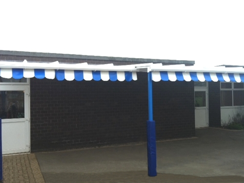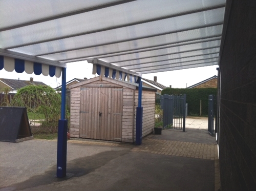 We installed a 12.9m x 5m Coniston Wall Mounted Canopy at Cavalry Primary School creating cover outside some of their classrooms. They chose to have the rainbow package added to their canopy, the rainbow package creates a fun and friendly atmosphere where their pupils will enjoy playing and learning.