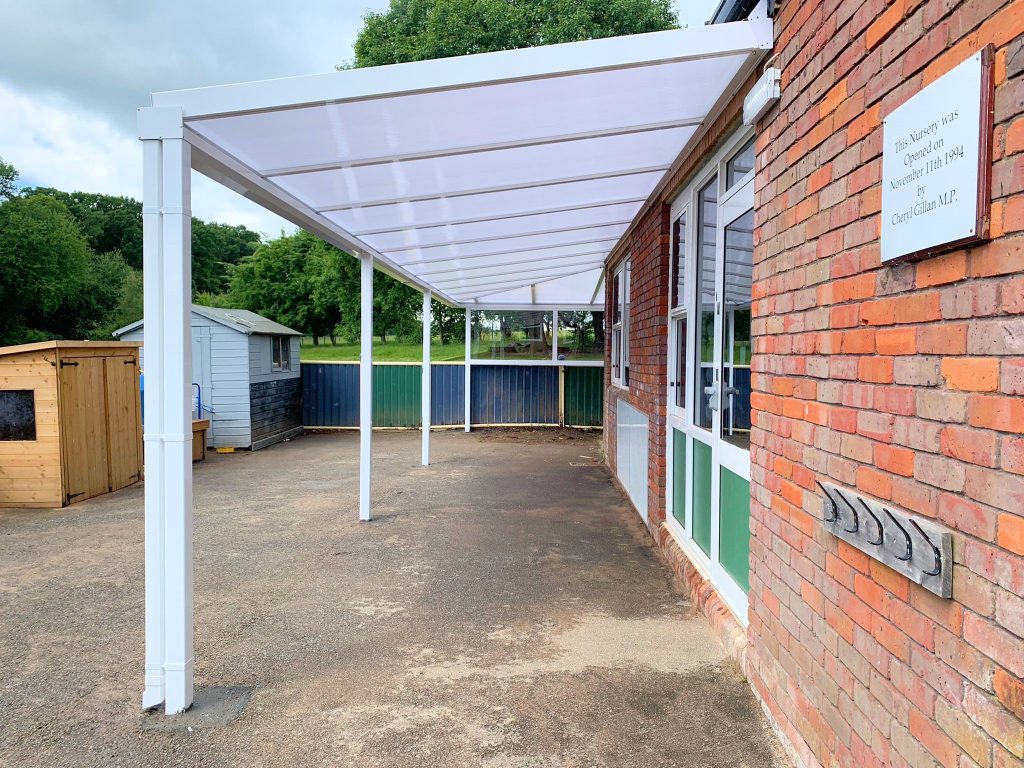 In February 2022, our fitting team supplied and installed a 7m x 2.9m Coniston Wall Mounted Canopy with hip section to a 7.6m x 2.4m. The Coniston Canopy creates shelter from the rain and shade from the sun being the perfect solution for the school.