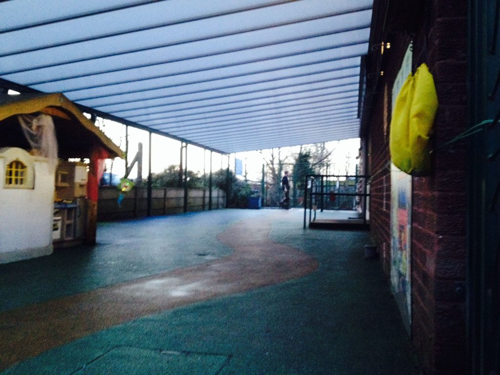 To meet the schools requirements, we installed a 17m x 5.4m Coniston Wall Mounted Canopy creating a large outdoor covered area for the children to play and learn outdoors during all different weather conditions.