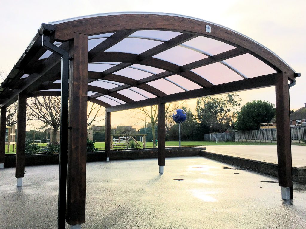 After meeting with the local surveyor, the school discussed that they would like a timber canopy installed within their grounds. We installed an 8m x 4m Tarnhow Dome Free Standing Canopy in the centre of the school playground which created an attractive outdoor play area.