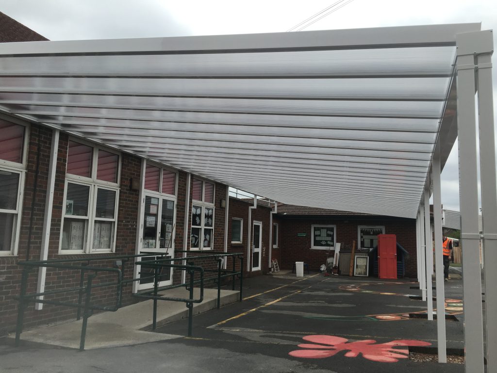 In September 2016 we installed two Coniston Wall Mounted Canopies on rear brackets for extra support due to the building type. The wall mounted canopy allows the children at Cheam Park Farm Nursery and Infant School to enjoy playing and learning outside throughout the whole year.