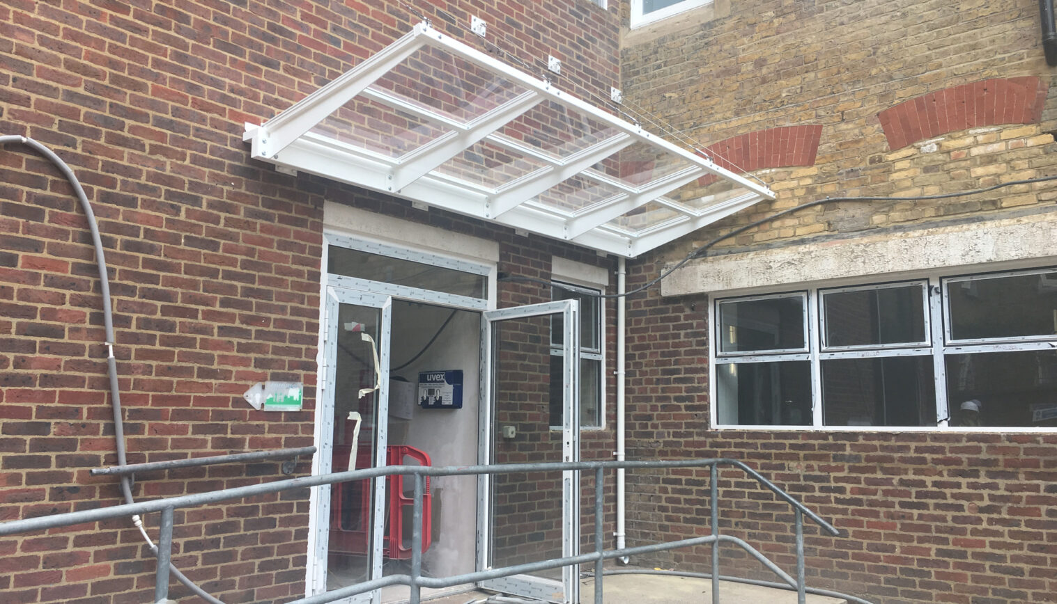 In October 2016, we installed a 3.845m x 1.5m Kensington Junior Entrance Canopy to the building which met their requirements perfectly. The canopy was coloured in white which matched the door and window frames.