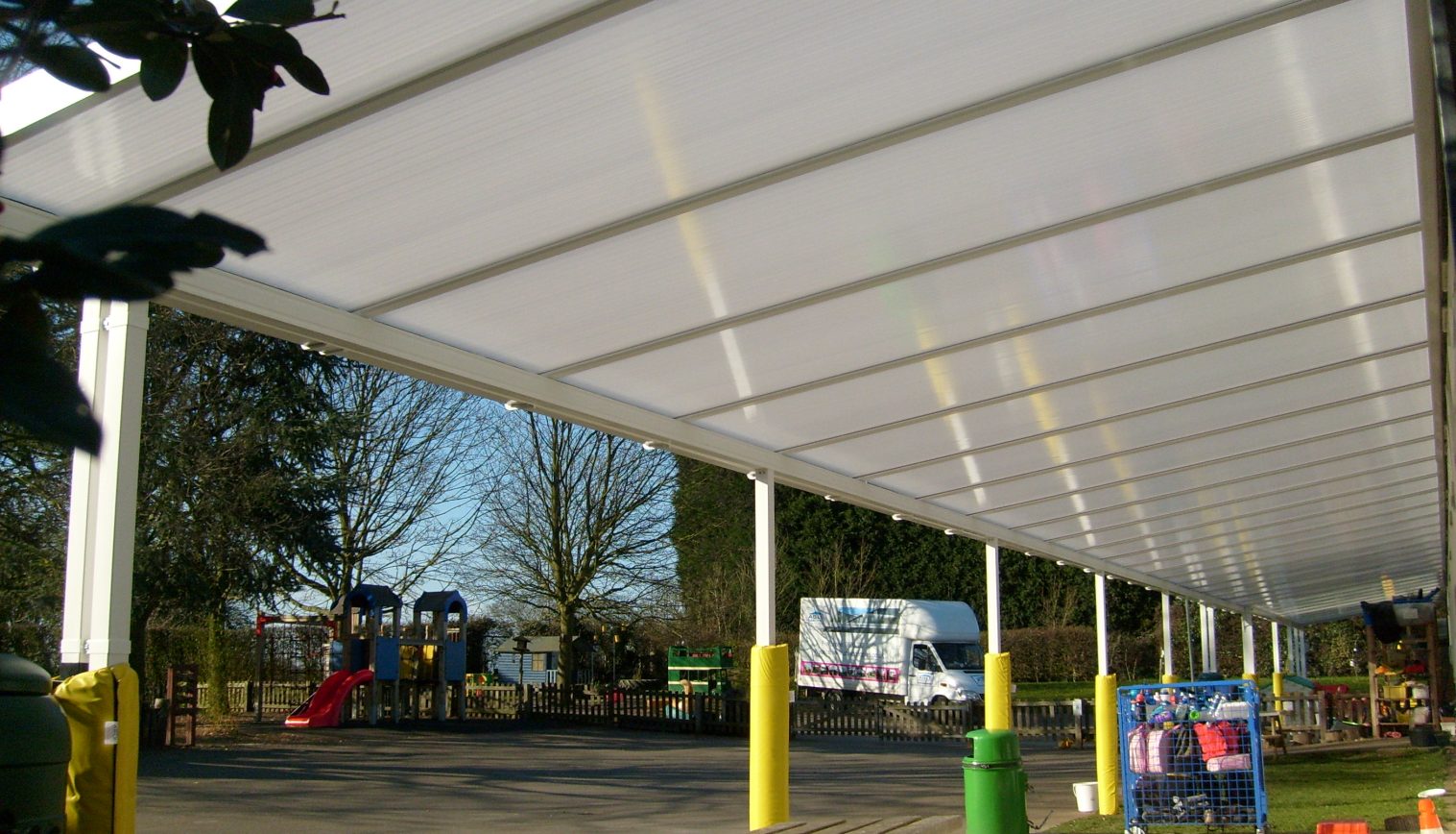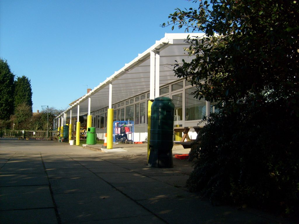 We installed 22m x 3m Coniston Wall Mounted Canopy at Codicote C of E Primary School. This created cover to some of the classrooms and shade to the playground allowing the pupils to play in the sun for a long time because the Coniston protects up to 99% UV rays.