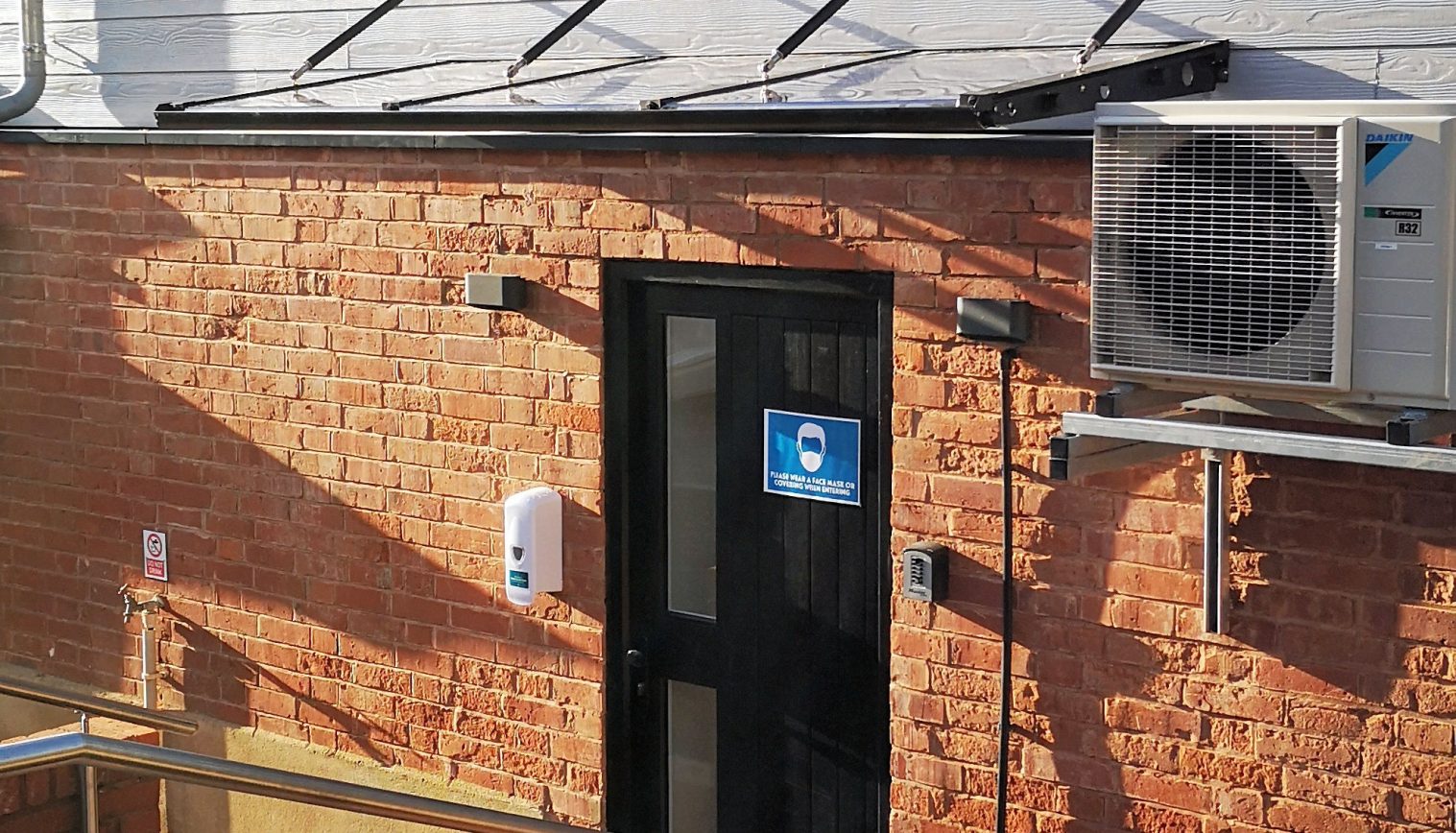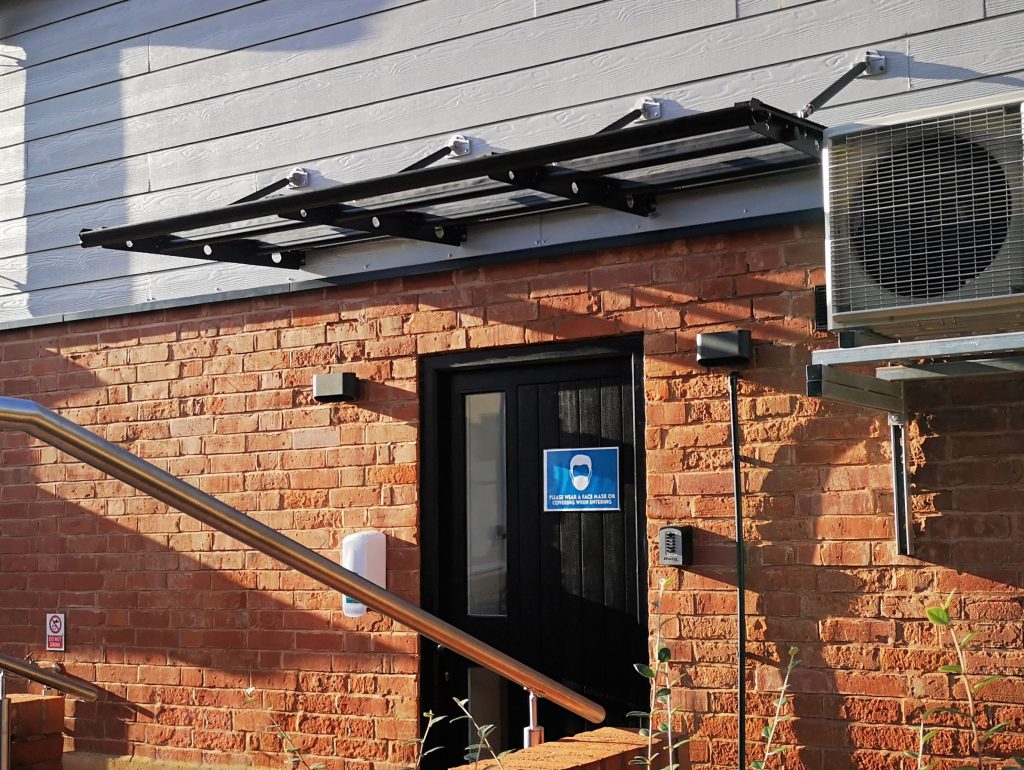 Able Canopies Ltd supplied a 2.45m x 1m Beck Wall Mounted Entrance Canopy at Cofton Holiday Park in Exeter, Devon.