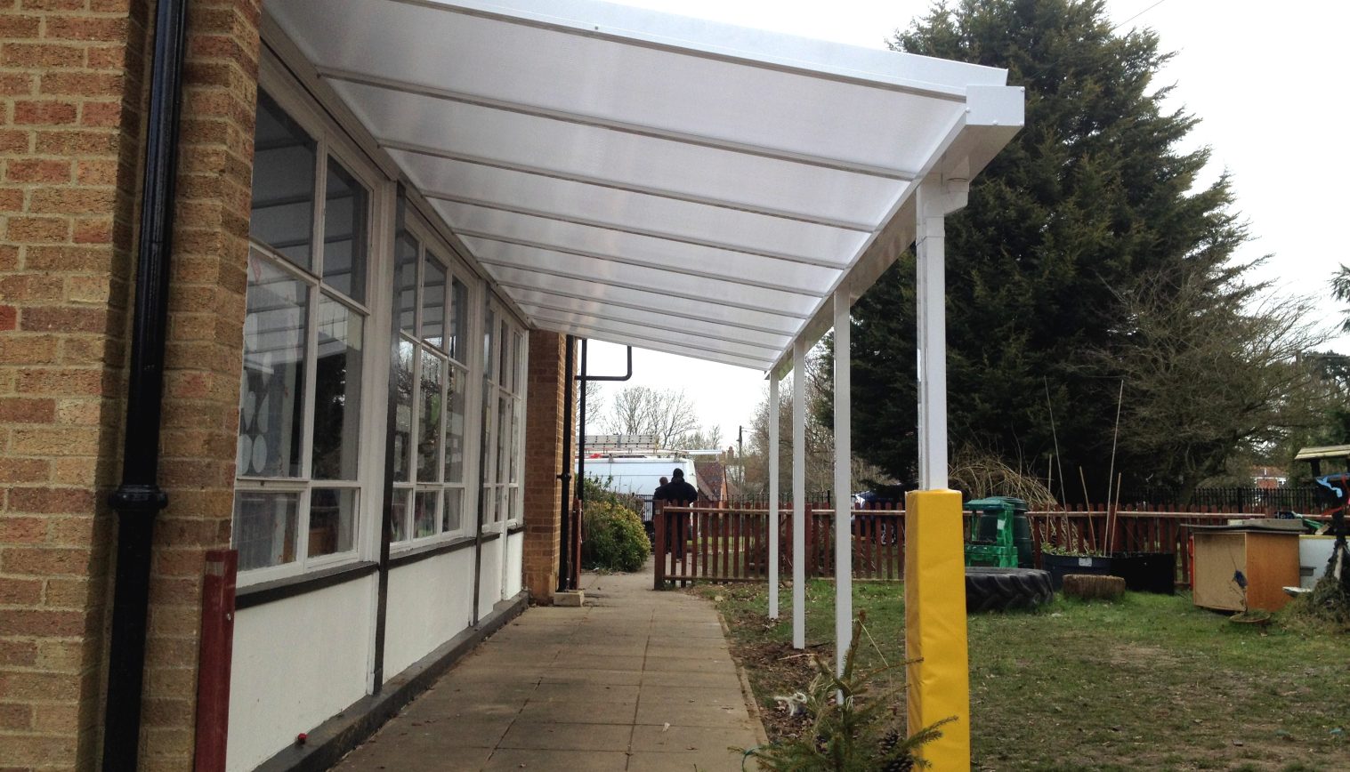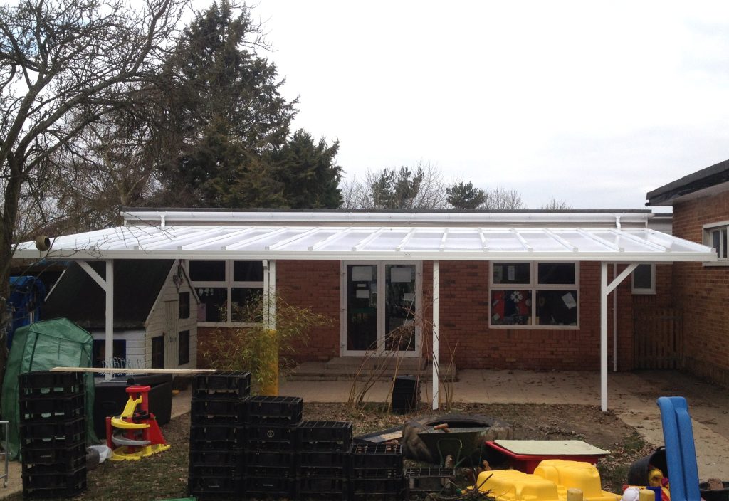 We installed two Coniston Wall Mounted at Cookham Dean Primary School to two separate areas of the school playground. One measured 10.5m x 4.5m and the other 9.5m x 2.5m, creating covered outdoor areas. The Coniston offers up to 99% protection from UV rays allowing the pupils to play under the canopies for a long time.