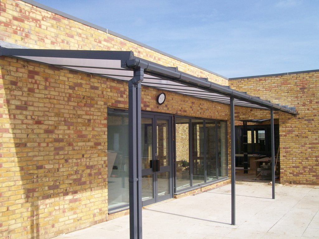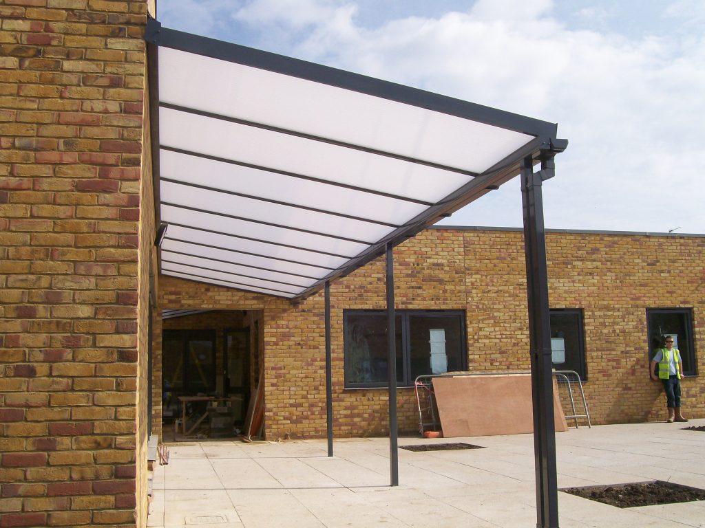 One measured 7m x 3.6m and the other measured 7.2m x 3m, creating two separate sheltered outdoor areas. They chose for the frame work of their canopy to be grey matching the rest of the school’s surroundings.