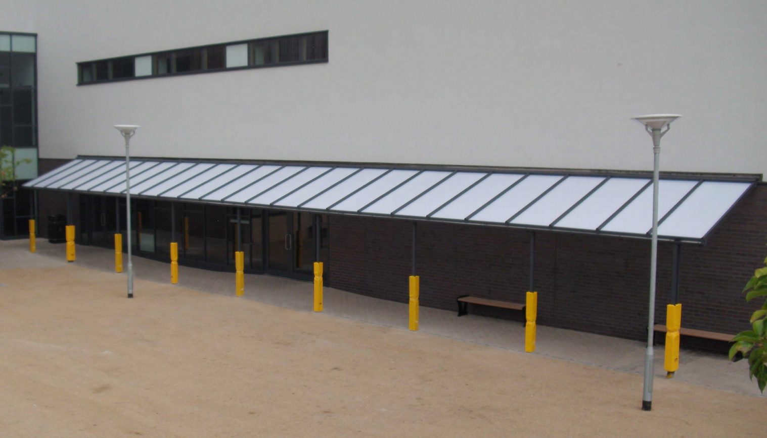 We installed a 25m x 2.5m Coniston Wall Mounted Canopy at Culcheth High School this created a long walkway against the school wall. The Coniston will also help to keep the building’s interior cool by shading windows and deterring unwanted heat.