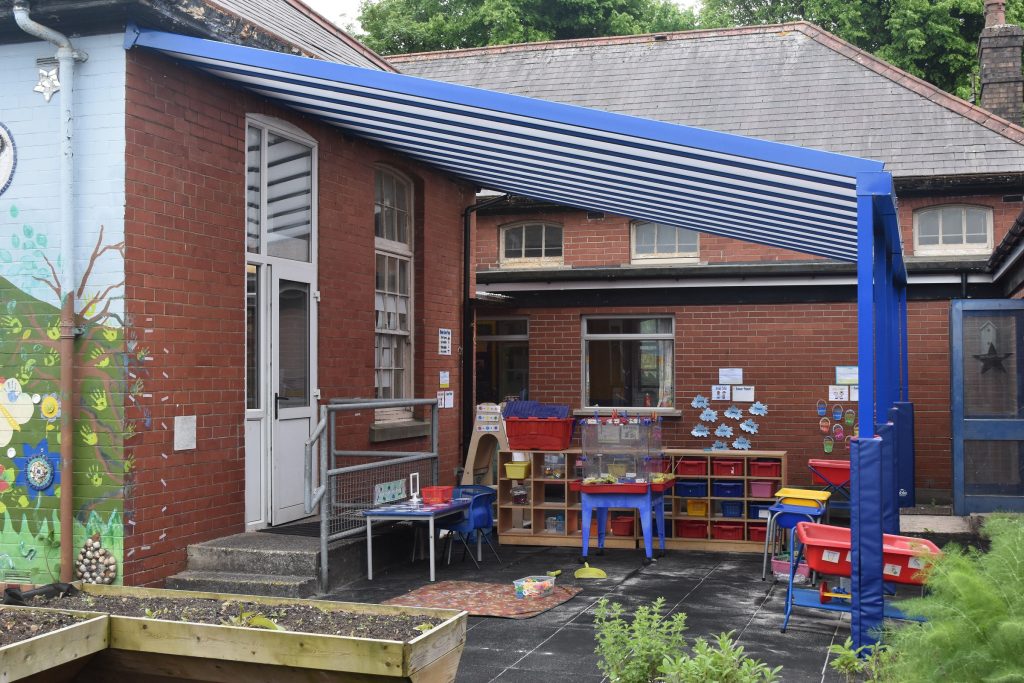 We installed a 6.94m x 5m Blue Coniston Wall Mounted Canopy at Dolau Primary School in April 2016. The Coniston creates shelter from rain and snow and shade from the sun with high UV protection.