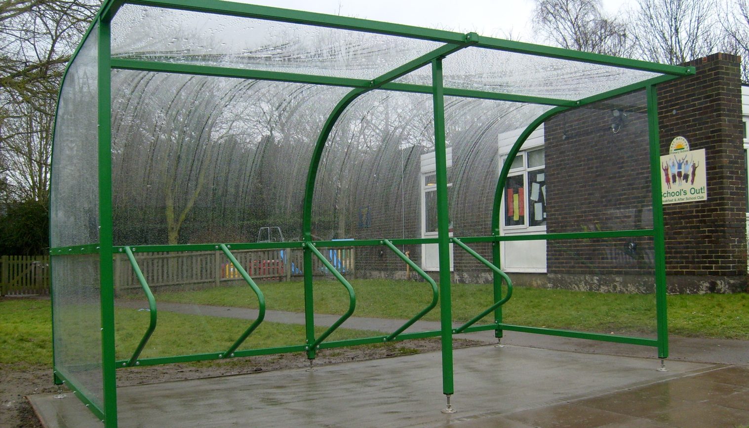 We installed a green 4.2m x 2.1m cycle shelter which can holds up to 10 bikes at East Borough Primary School. This shelter should help to encourage more pupils to bike to school as they know they’re bike will be safe and secure during the school day. We also installed a Coniston Wall Mounted Canopy. To view this install click here.