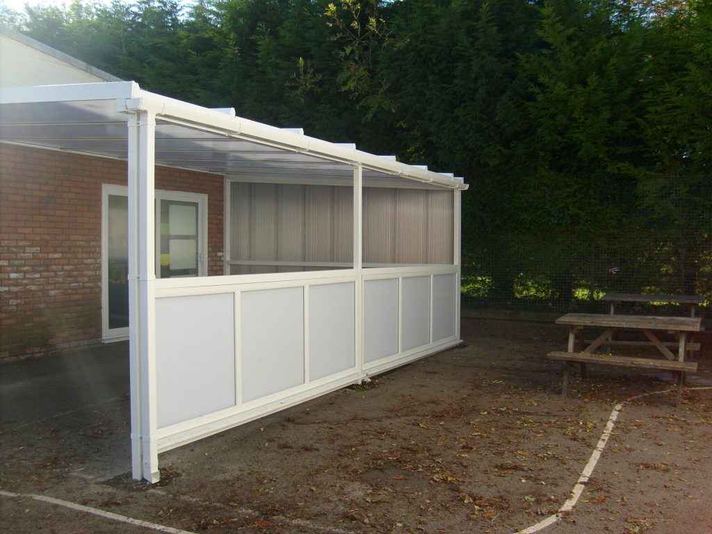 One of our fitting teams installed a 6.5m x 4m Coniston Wall Mounted Canopy with Side Fill & Safety Barrier at Edlesborough School, creating a perfect enclosed covered area to the school playground. The canopy will allow the children to play outside in all weathers because of the high UV protection.