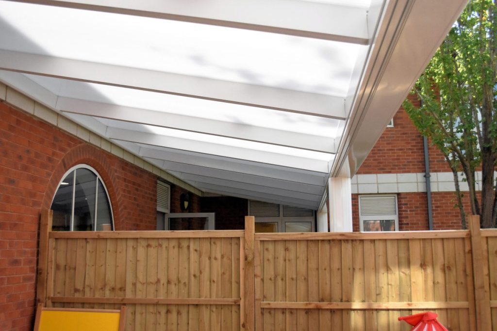Bullet Groundworks Ltd were working on a project at Glastonbury Library and wanted a canopy to be installed to create a covered outdoor area.