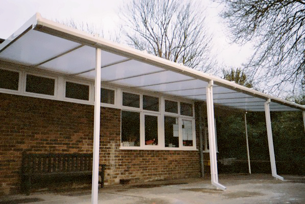 One of our fitting teams installed two Coniston Wall Mounted Canopies at Goring C of E Primary School, creating two separate covered outdoor areas where the children to play and learn outdoors all year round.