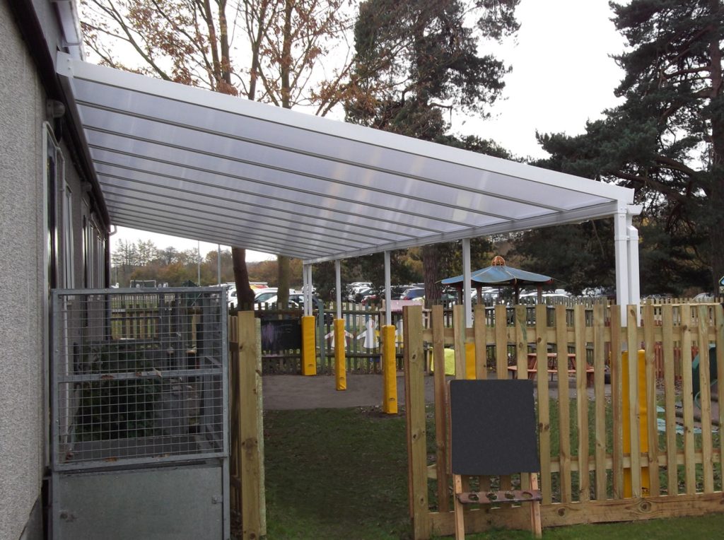 We installed a 13m x 4m Coniston Wall Mounted Canopy as this product provides the weather protection required by the nursery staff and therefore enables the children to learn and play outdoors whatever the weather.