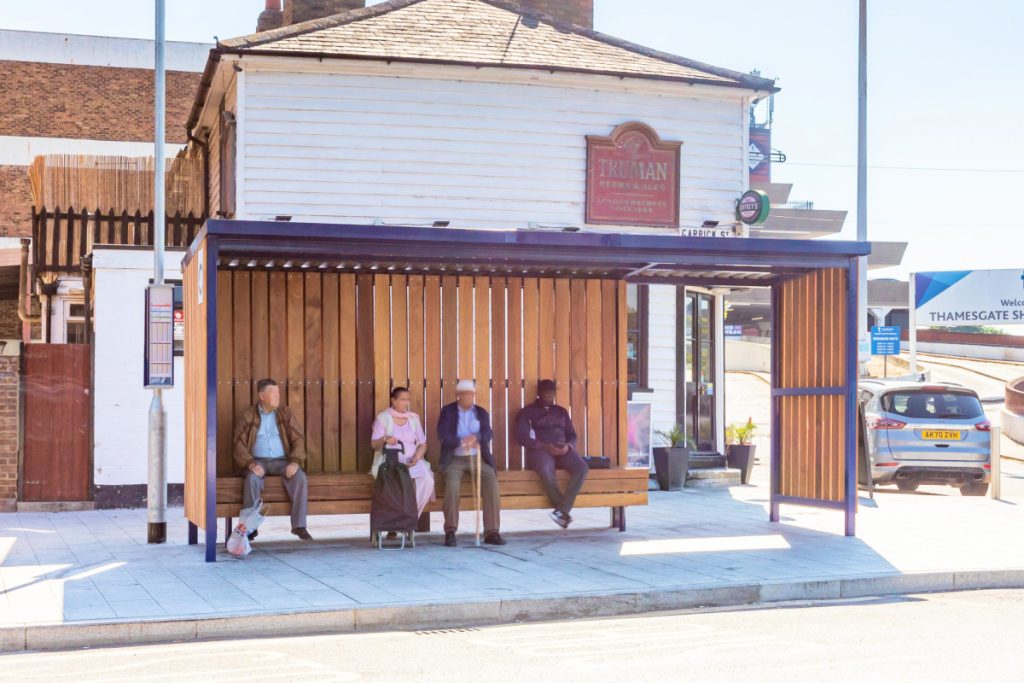 Able Canopies Ltd. were working on a project at Gravesend Bus Shelter in Kent which involved the installation of a Bespoke Grasmere Timber Clad Shelter and two Kensington Dual Pitch Free Standing Canopies.