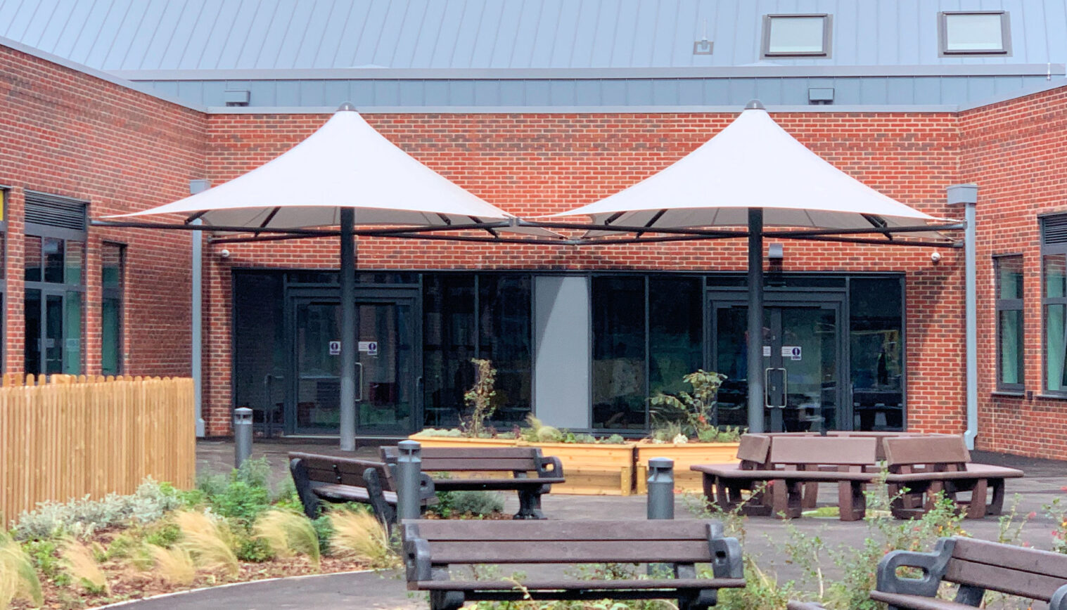 We supplied and installed two 6m x 6m Ulverston Umbrellas at Hazelbrook SEN School in Taunton, Somerset on behalf of Willmott Dixon.