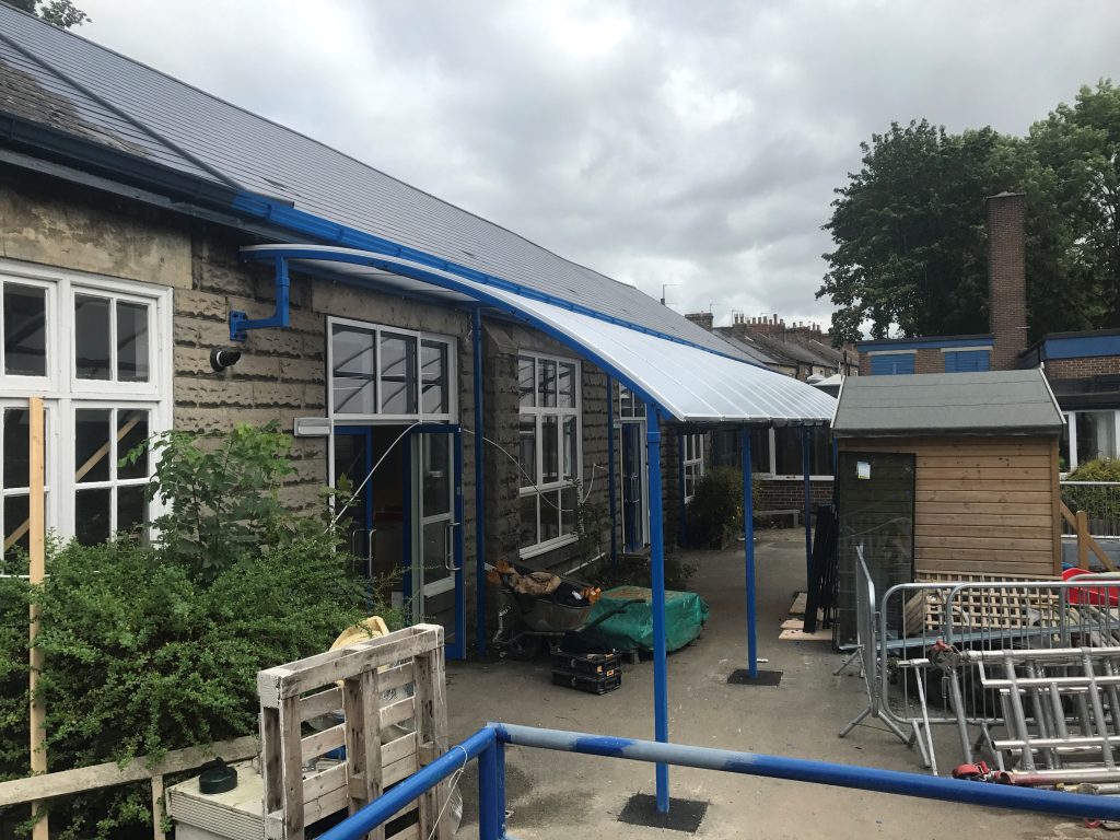 Northern Bear Building Services were working on a project at Holy Family RC Primary School in County Durham. They were looking for a canopy to create an outdoor covered area to a row of classrooms.