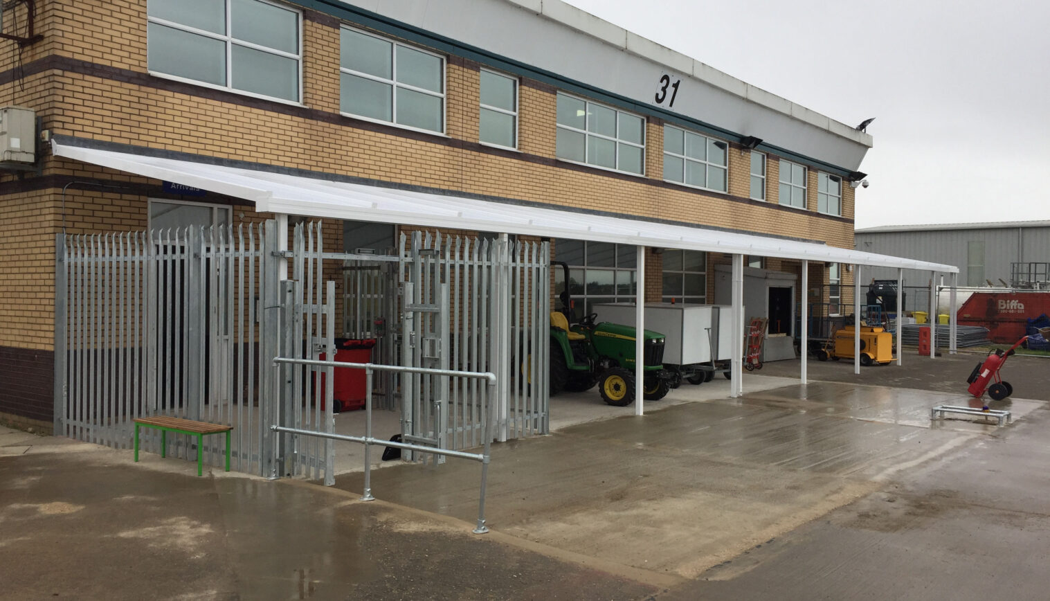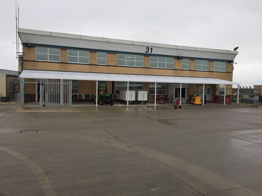 To meet the requirements, we installed a 24.5m x 4m Coniston Wall Mounted Canopy. This gave shelter to important piece of airport equipment but also allowed efficient access. Secure fencing was added to one end of the canopy to provide additional security for the airport.