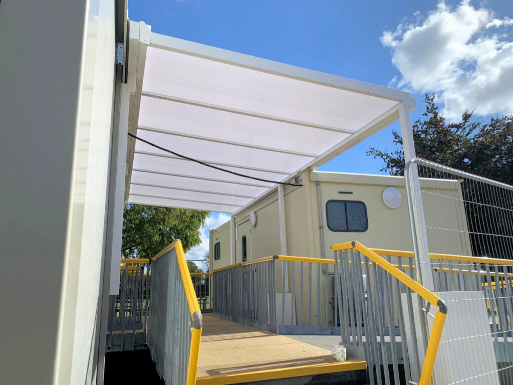 Hunsdon Junior & Infant School wanted to improve accessibility and usability across their site by providing weather protection along a key outdoor walkway connecting to their modular buildings, supplied by Portakabin Ltd. The school’s goal was to create a safe and comfortable route that pupils and staff could use throughout the year.