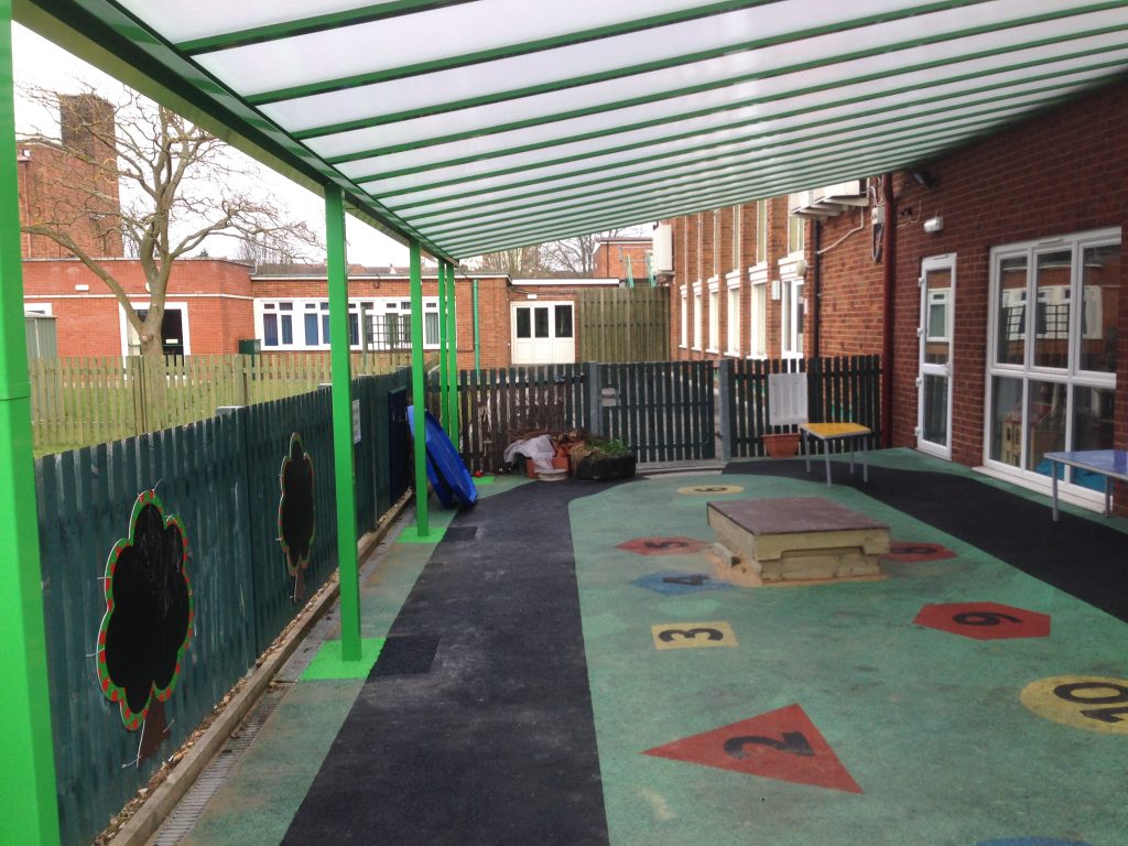 Leagrave Children’s Centre got in contact with us as they needed a canopy over the existing outdoor play area at the rear end of the centre as it is the only outside space for the children.