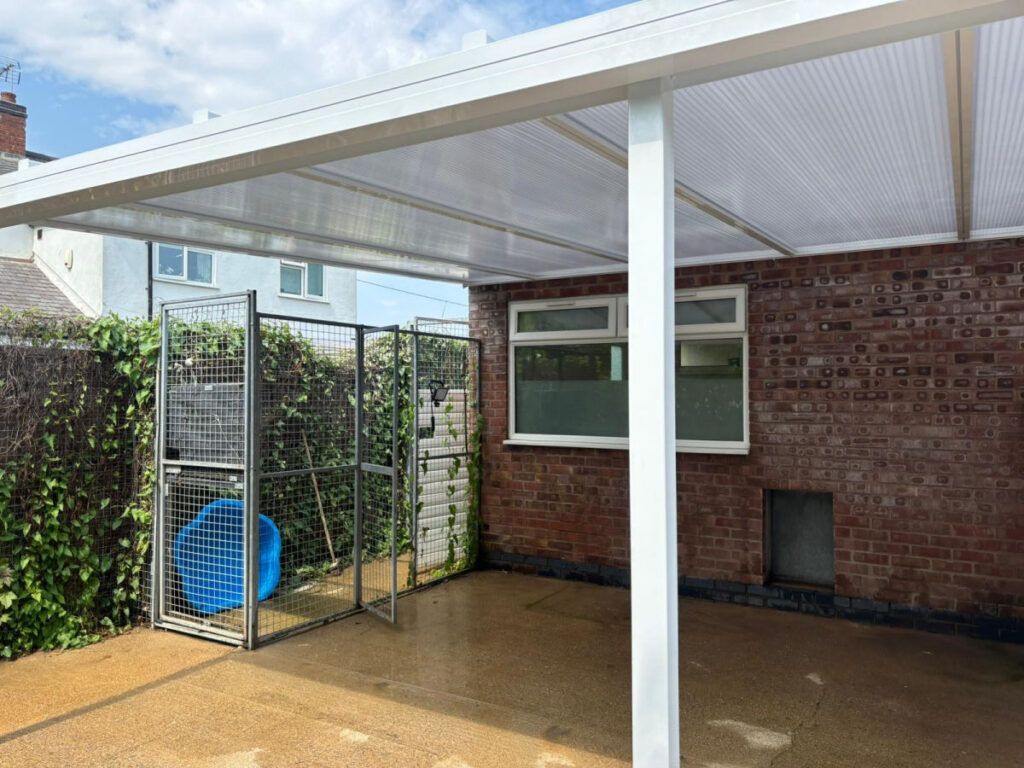 In August 2024, we supplied and installed a 5m x 4m Coniston Wall Mounted Canopy, extending their existing canopy at the Leicester Animal Aid Association in Huncote, Leicestershire.
