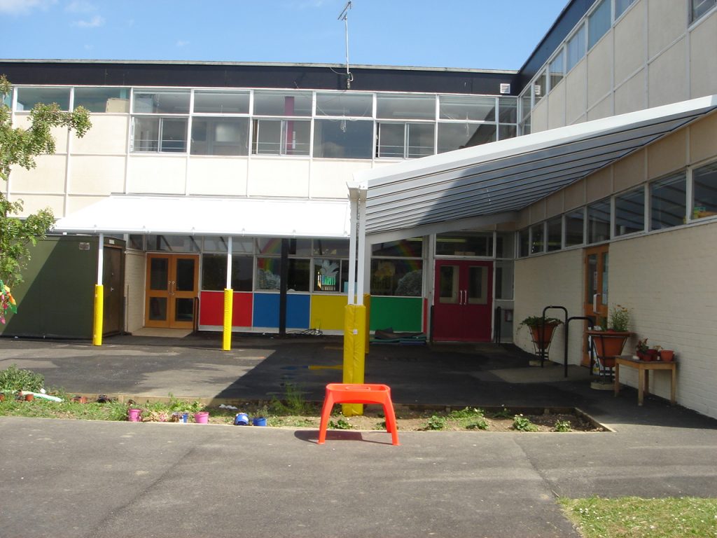 Linden Grove Primary School – Wall mounted canopy – First installation