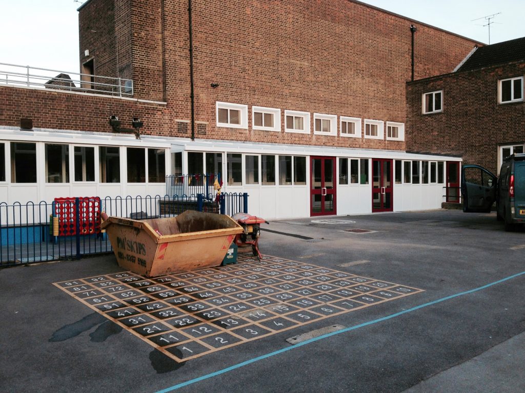 Lovelace Primary School required a new wall mounted canopy to replace their existing canopy. They wanted a structure that could be completely enclosed to provide a sealed unit to keep pupils dry when walking from classroom to classroom.