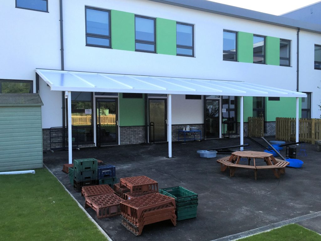 In September 2015, our fitters installed two Coniston Wall Mounted Canopies at Mesne Lea Primary School creating covered outdoor areas allowing the pupils to learn and play outdoors through all different weather conditions.