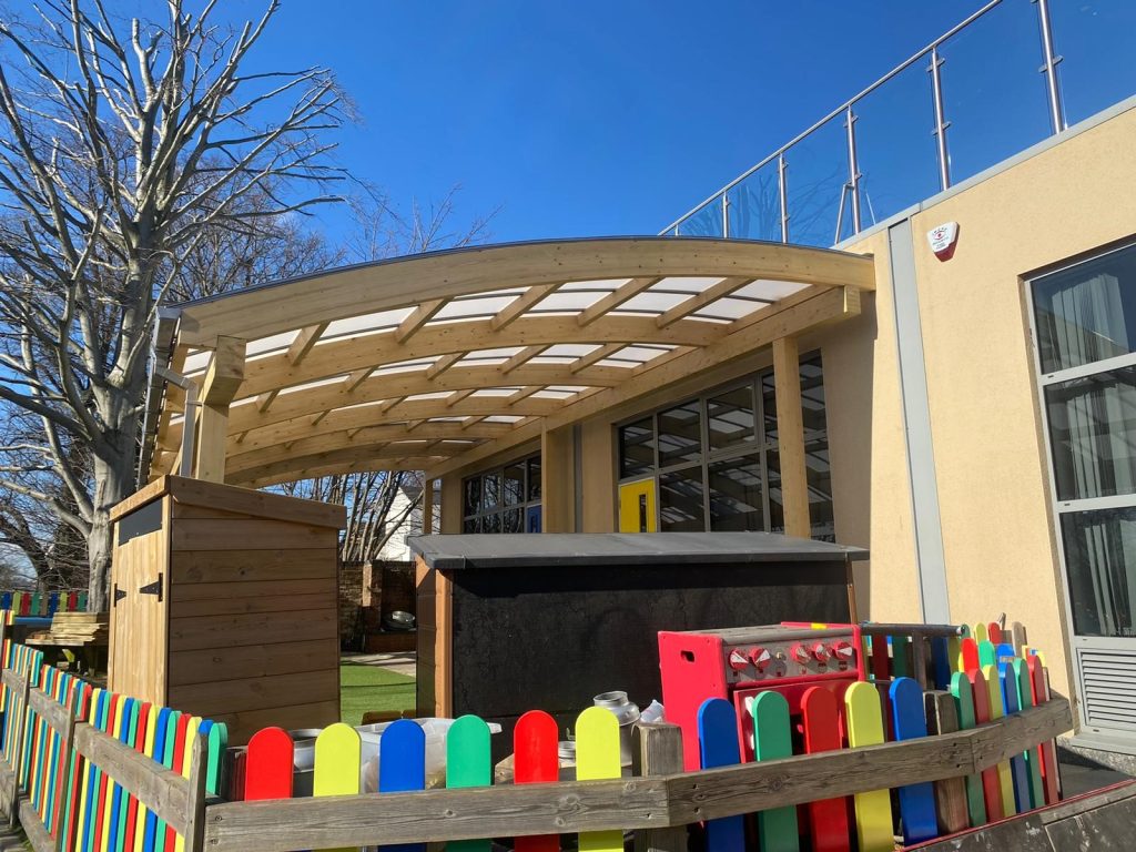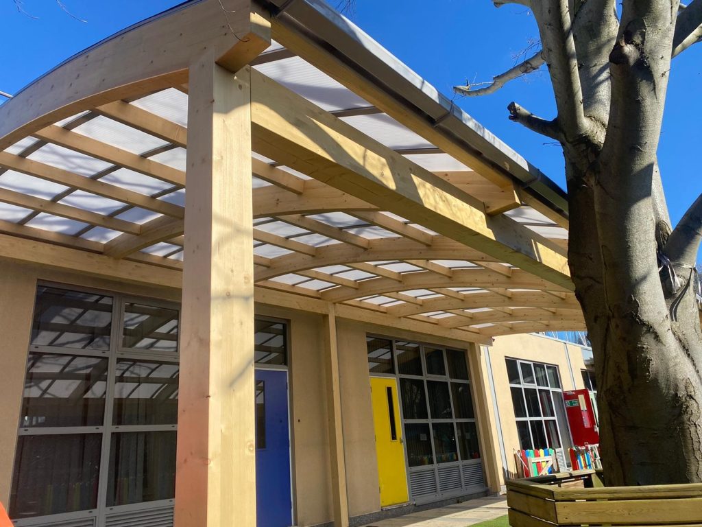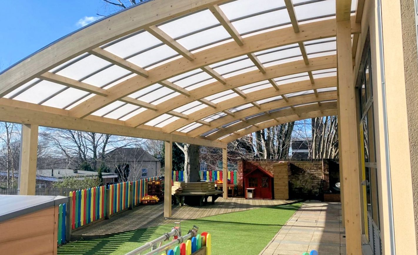 Nishkam Primary School in Birmingham, West Midlands were looking for a canopy to be added to their school playground to create a permanent outdoor covered area that could be used for outdoor play and learning all year round.