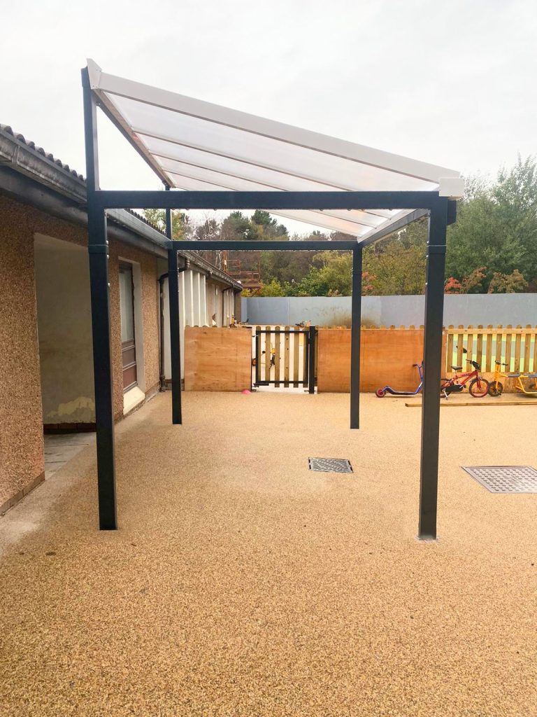 West Lothain Council contacted us on behalf of Ogilvie School Campus in Livingston, West Lothian as they were looking to have two canopies installed in the school grounds to create covered play areas.