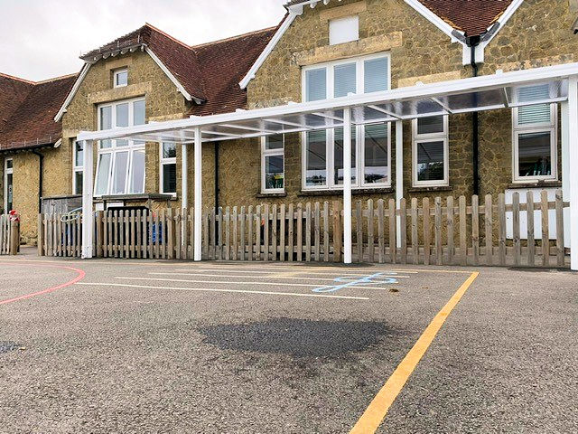 The 8.4m x 2.9m Coniston on Rear Steel Goal Posts our fitting team supplied and installed at Peaslake Free School in Guilford, Surrey helped to create the outdoor covered area that the school needed, allowing the students to spend as much time outside in all weather conditions.
