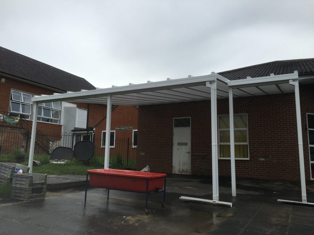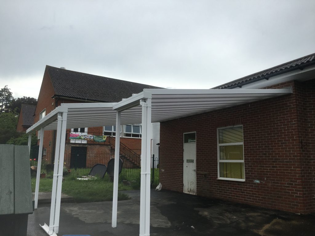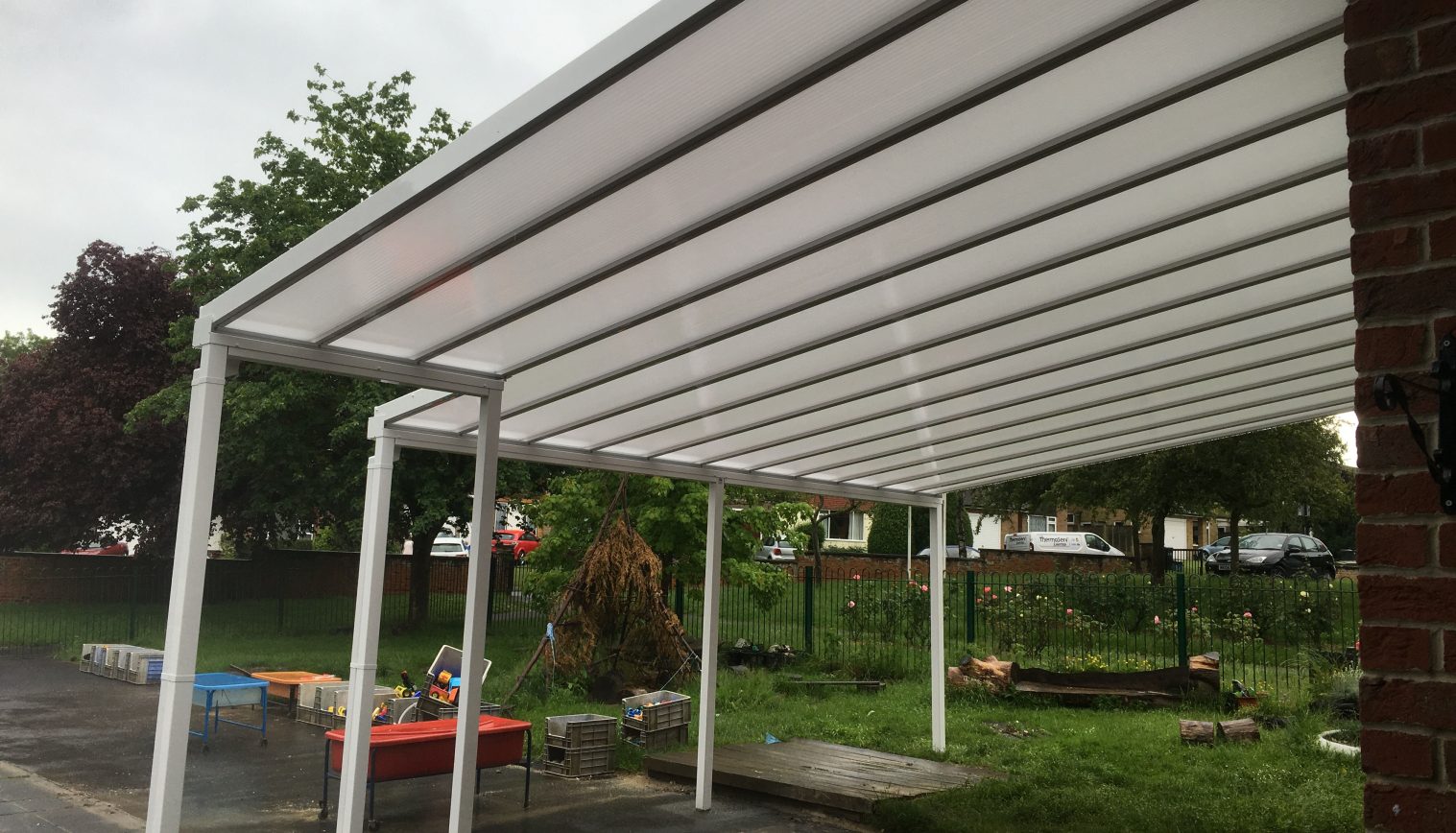 Our fitting team, supplied and installed this 7m x 6m Coniston Wall Mounted with a staggered eaves beam so the canopy fitted the design of the playground. The canopy offers uninterrupted cover from inside to outside and allows the children to enjoy the outdoors all year round.