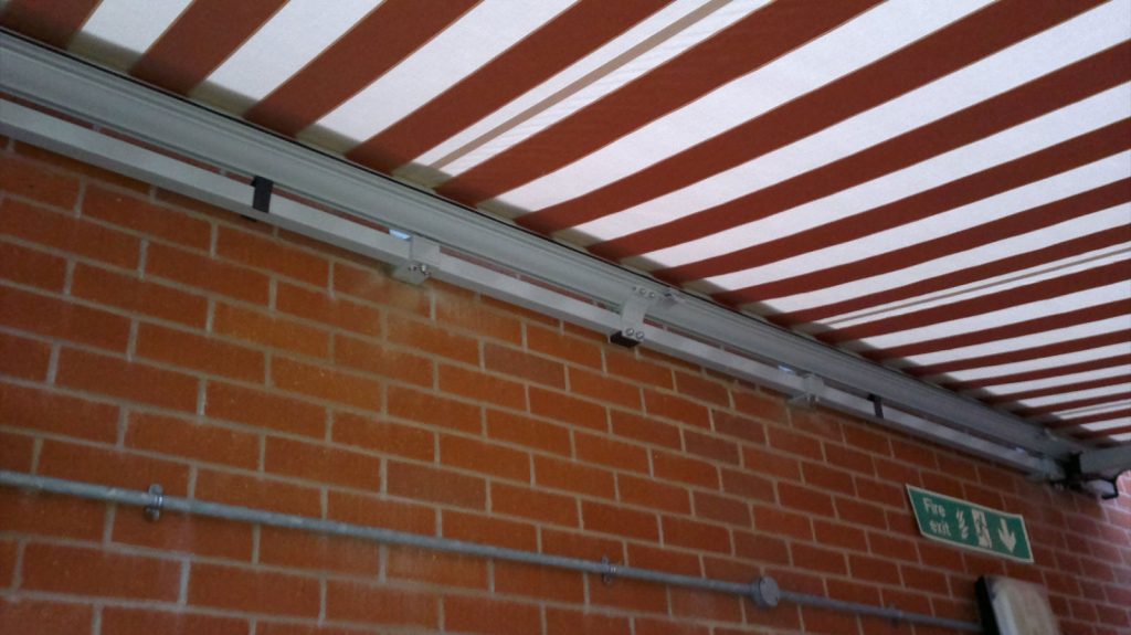 Sailsbury District Hospital were looking for an attractive retractable shade solution at their hospital. We installed a 5.9m x 3.6m electronic commercial awning, with red and white stripy fabric. By having an electrically controlled awning it allows them to quickly and easily open the structure and then close it at the end of the day to ensure it is protected from damage.