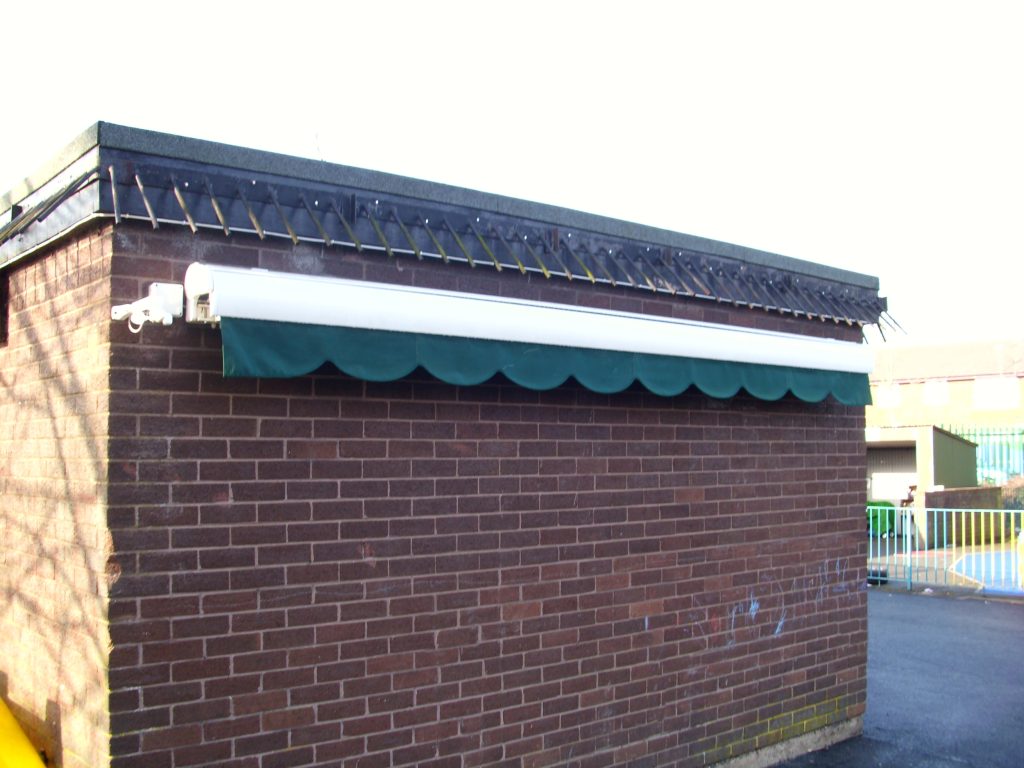 St Mary’s Primary School were looking to create a shaded area to their playground. To meet the school requirements we installed a 4.1m x 3.6m bottle green commercial awning which provides cover to their playground and can easily be retracted when the area is needed for sports activities.