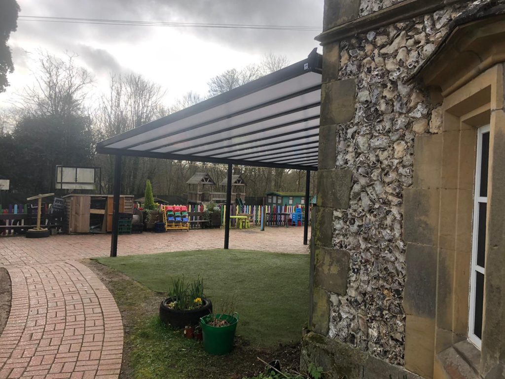 To meet the requirement, we installed a 6.4m x 6m Coniston Wall Mounted Canopy on RSGP to the school creating the outdoor covered space they wanted allowing them to use the outdoors in all weather conditions.