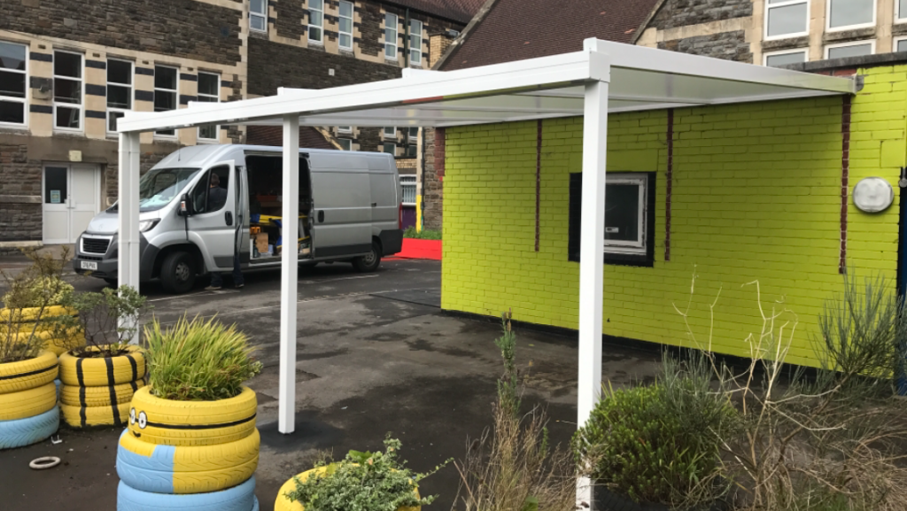 Stacey Primary School in Cardiff, contacted us enquiring about a canopy which would create a covered outdoor area to their school grounds which would allow outdoor play and learning all year round.