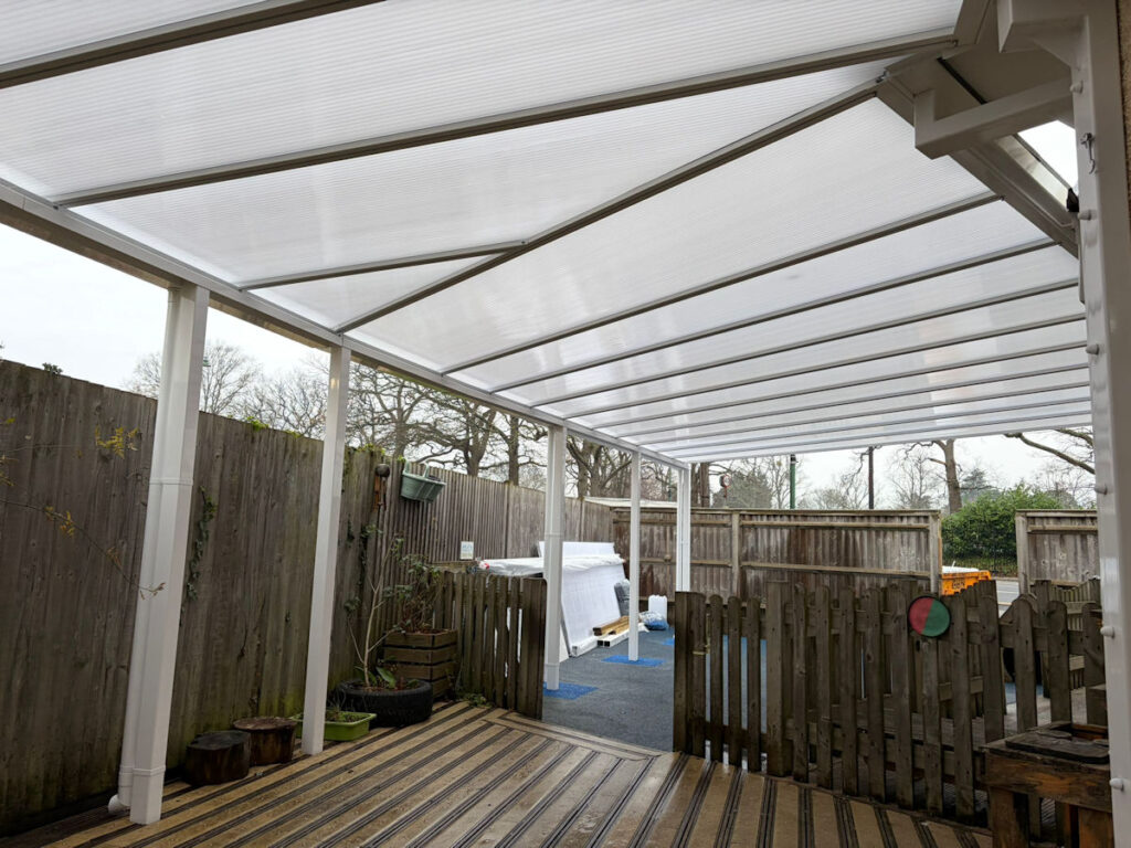 In December 2025, we supplied and installed a Bespoke Coniston Wall Mounted Canopy at Storybook Montessori in Ascot, Surrey.