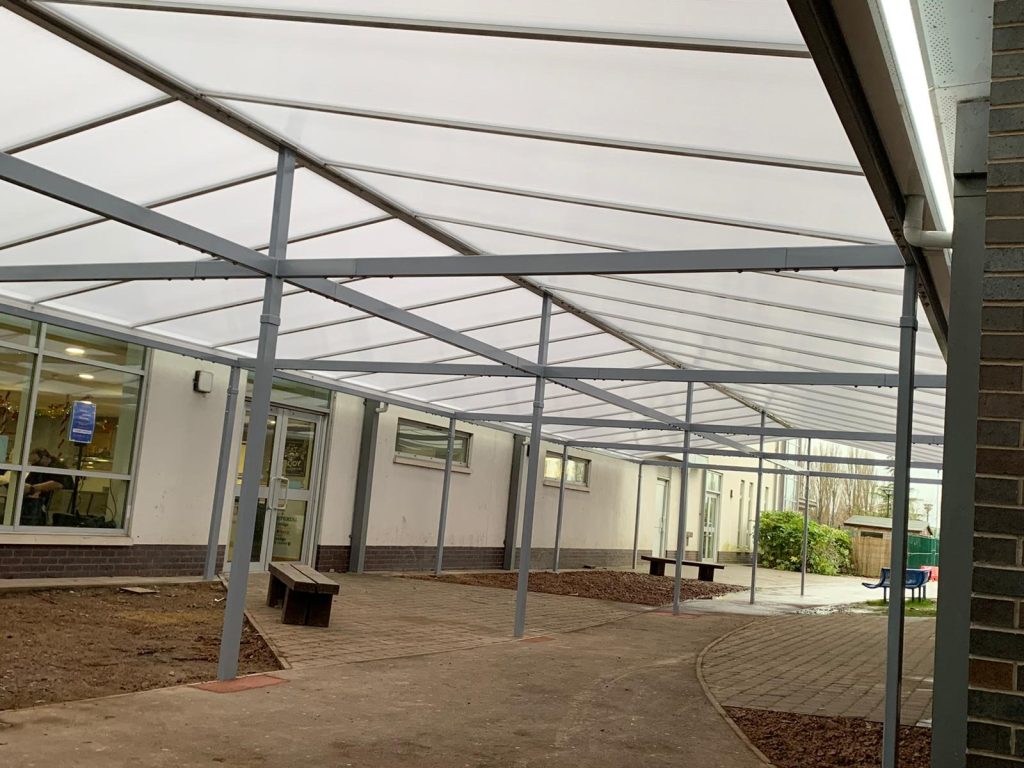 After a free site survey, we installed a 25m x 8.6m Double Grange Free Standing Canopy which was the perfect solution for the requirements. The canopy will allow the students to use the outdoor covered space all year round due to the excellent weather protection it provides.