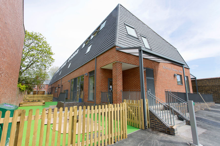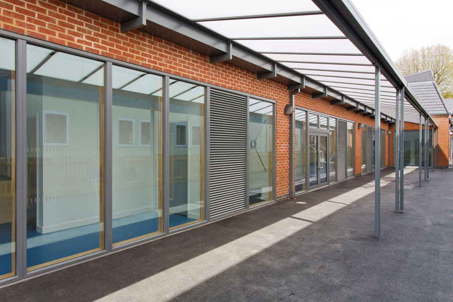 We installed three various size Coniston Wall Mounted Canopies at Telferscot Primary School in London on behalf of Jerram Falkus. The canopies created two covered walkways to the school grounds and a stunning entrance canopy, they were coloured in the RAL colour Basalt Grey which matched the building’s surroundings perfectly.
