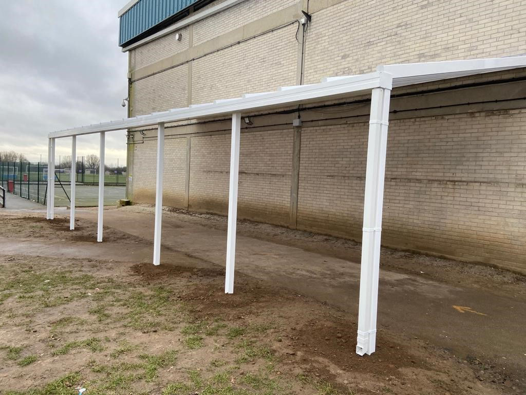 In December 2020, we supplied and installed a 11.5m x 5m Coniston Wall Mounted Canopy meeting the schools requirements creating a permanent outdoor covered area that the students can use all year round.