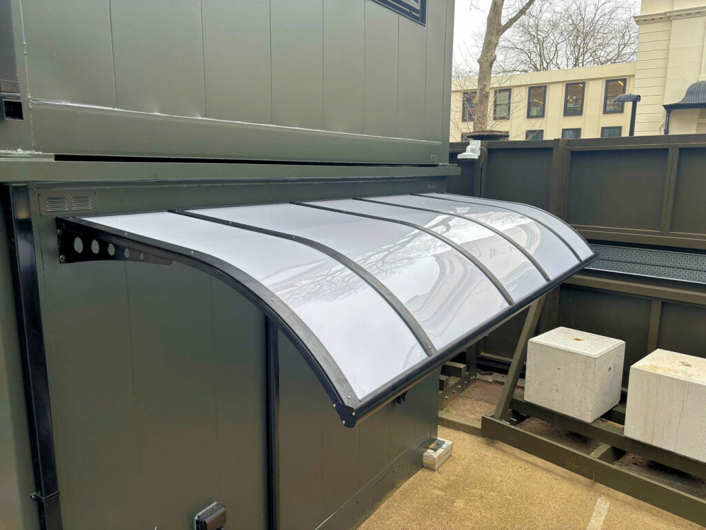 On behalf of Integra Buildings Ltd, we supplied and installed two Abberton Wall Mounted Entrance Canopies measuring 3.6m x 1.5m and 2.8m x 1.5m at The British Museum. These modern entrance canopies provide robust protection for the electric charging trolleys, sheltering them from rain, wind, and sun damage. With their contemporary aesthetics and practical functionality, The British Museum entrance canopies not only safeguard equipment but also enhance the visual appeal of this location.