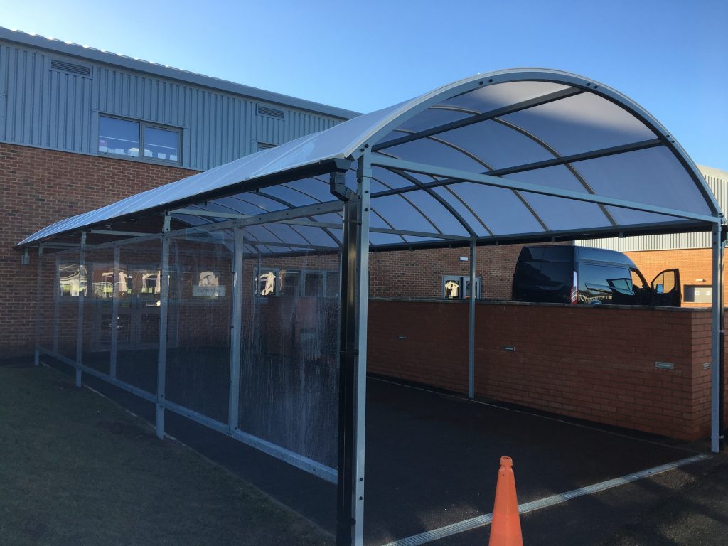 The Premier Academy Ltd got in contact with us as they were looking for a walkway canopy, they wanted it to be installed cover an entrance area as well.