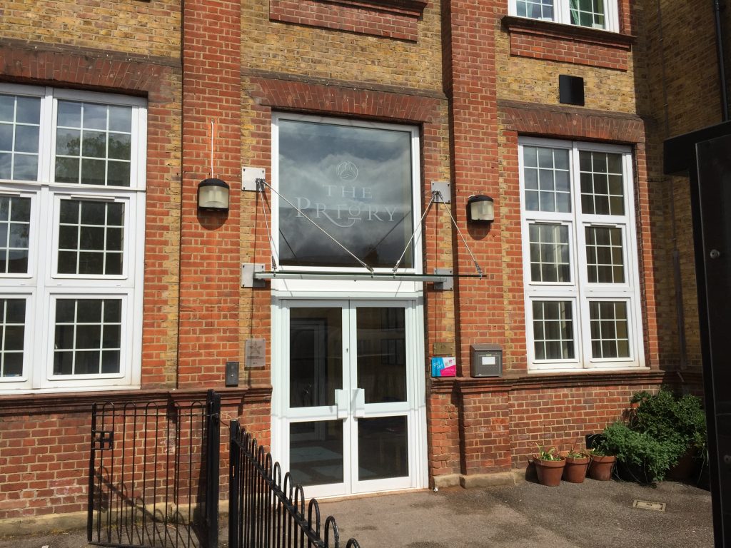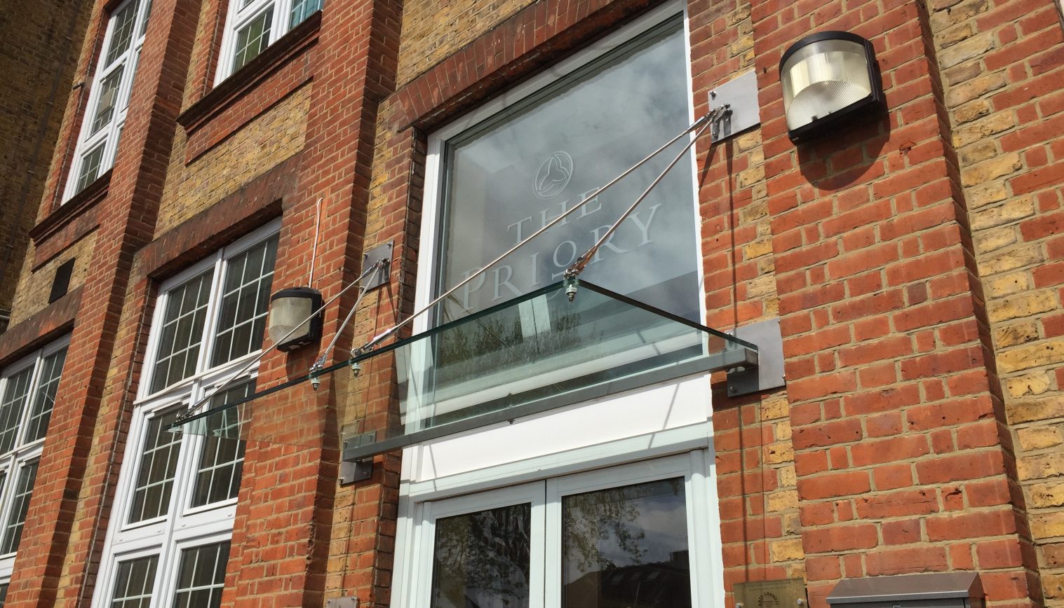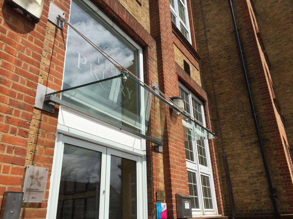 BRM Associates contacted us as their client, Priory CE School required a small canopy above their main entrance to provide shelter from the rain. They were looking for a glass canopy similar to the Kensington Entrance Canopy but with a minimal appearance.
