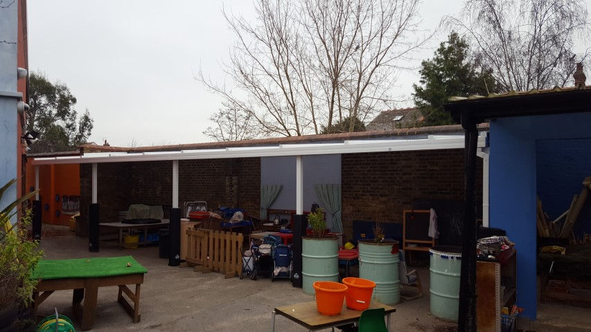 We installed a 12m x 3m Coniston Wall Mounted Canopy which created the perfect outdoor area they were looking for. The Coniston shelters from the rain and snow and shade for protection from the suns high UV.