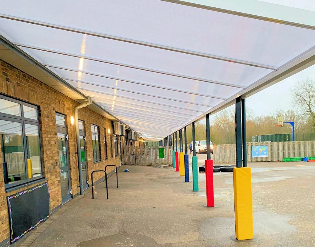In February 2022, we supplied and installed a 41m x 3.5m Coniston Wall Mounted Canopy meeting the school requirements perfectly.