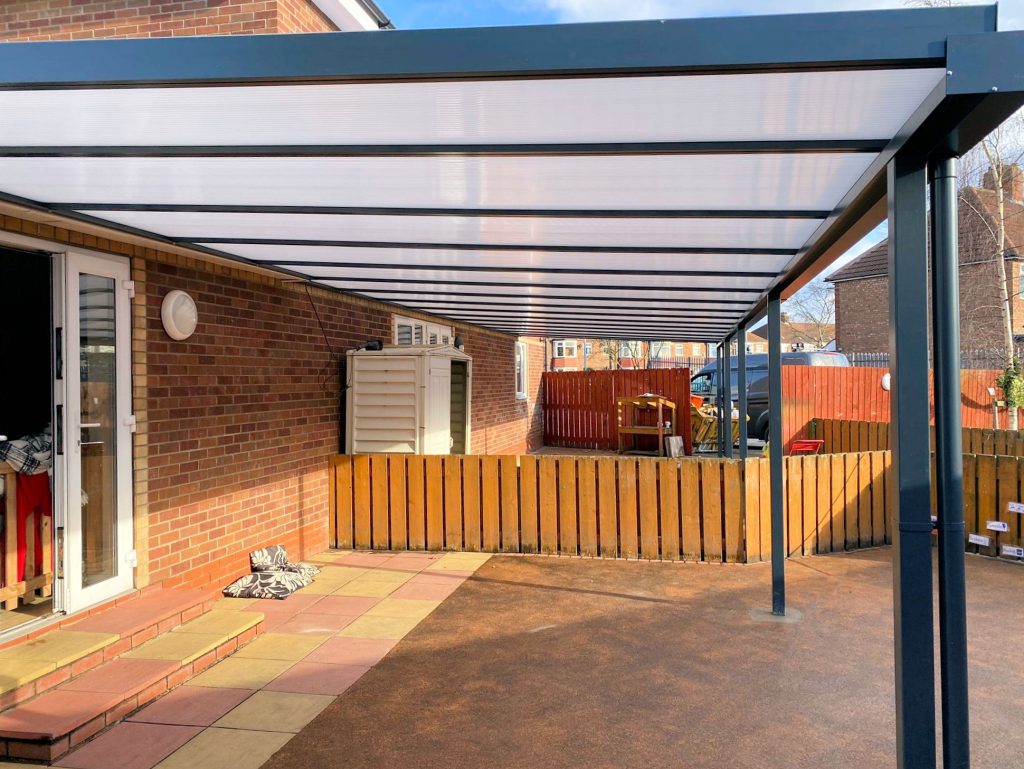 Tiptoes Day Nursery have a chain of nursery and pre schools in Hull and East Riding. They were looking to have canopies installed to a few of their sites to create outdoor covered areas that the pupils can use in all weather conditions.