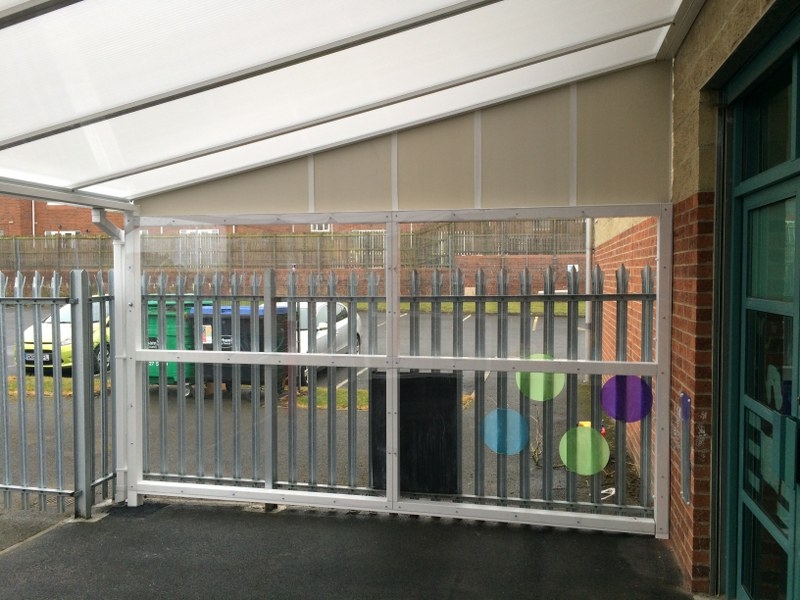 One of our fitting teams installed a 6.4m x 4m Coniston Wall Mounted Canopy with side fills at Eastlea Community Centre that is used by Tots ‘R’ Us Nursery. This created a covered outdoor area at the centre that will allow the children to play underneath the canopy whilst being protected from the sun’s harmful UV rays. It can also be used for a sheltered waiting area for when the parents pick up their children.